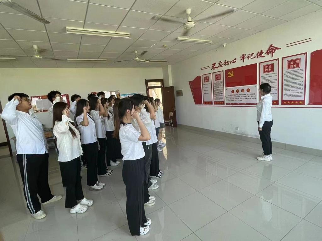 2023年6月27日,法学院各学生党支部组织学生党员开展了重温入党誓词活动。学生党员们佩戴党徽,高举右拳,再次庄重宣读铿锵的誓词。