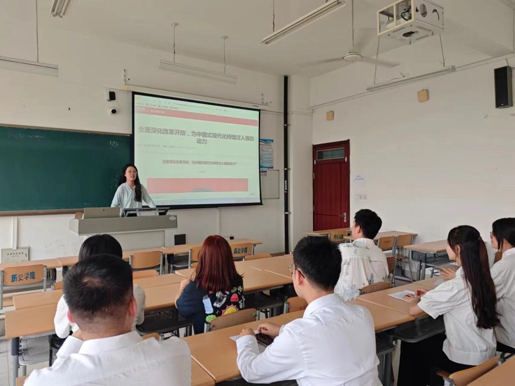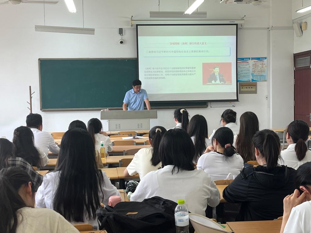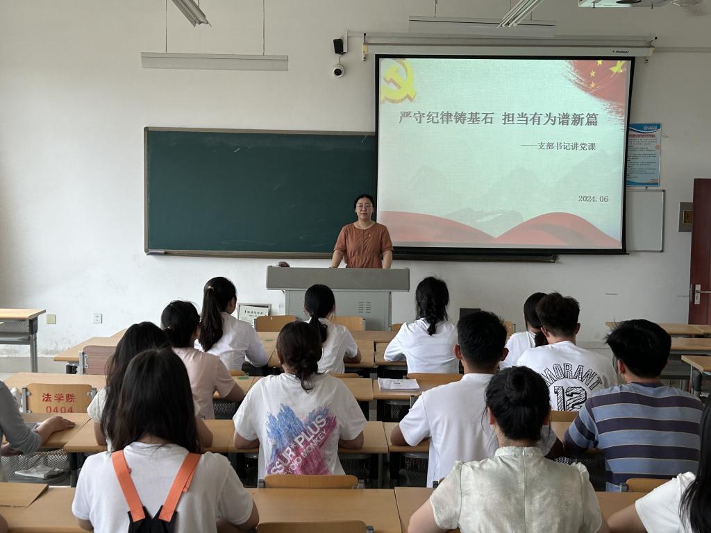 学院党委副书记王海霞以及5名党支部书记分别以《加强纪律修养,严格履行岗位职责》《全面加强党的纪律建设-学习解读《中国共产党纪律处分条例》》《党的“六大纪律”的主旨要义》《严守纪律铸基石 担当有为新篇章》等为题,为学院师生党员代表、所在支部党员上党课。党课内容紧扣党纪学习教育核心要求,围绕《中国共产党章程》《中国共产党纪律处分条例》等党内法规,结合法学院专业特色和党员队伍实际状况,深入讲解开展党纪学习教育的重要性和必要性,通过生动的案例剖析、深入浅出的理论阐述和互动交流等方式,引导党员们深刻理解党纪的内涵和外延,增强遵守党纪的自觉性和主动性,将党纪学习教育与提升工作本领、锤炼过硬作风相结合,切实把党纪学习教育成果转化为推动解决制约专业发展和学科建设的实际举措和具体成效,为推动学院高质量发展贡献力量。