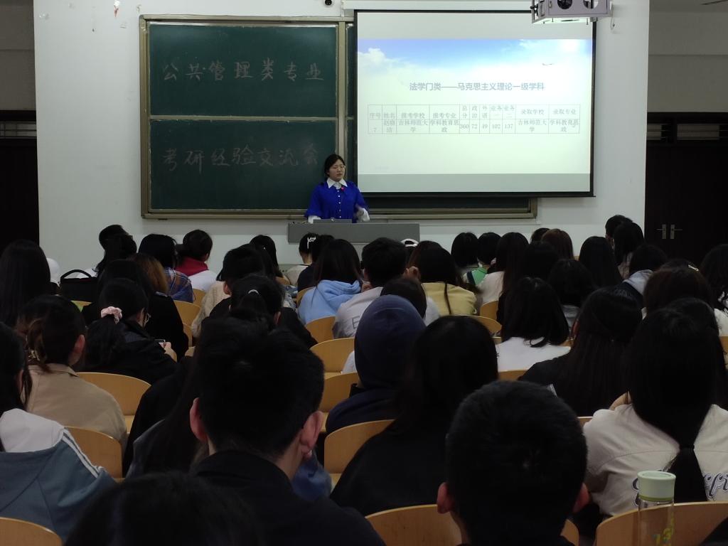 为帮助同学们了解考研信息、掌握考研技巧、增强学生考研信心,法学院于4月13日下午两点在博文楼427教室举办公共管理类专业考研经验交流会。行政管理专业和公共事业管理专业学生参与此次交流会。