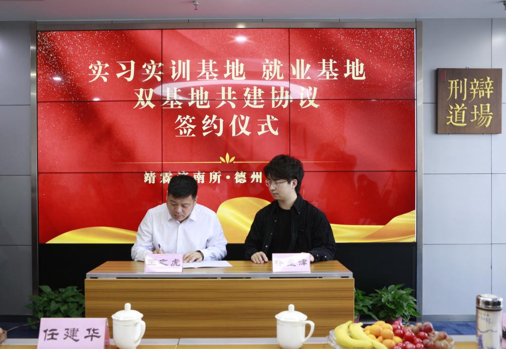 2021年12月9日,法学院院长助理朴星律、司法理论与实务研究中心主任任建华、实践教学中心副主任孙晓鹏一行三人赴浙江靖霖(济南)律师事务所交流对接工作。双方举行了实习实训基地和就业基地协议签订仪式。