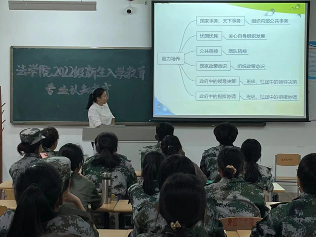 为了加强新同学对专业发展和学业生涯的认知,提供给他们必要的学习经验并给予有效的建议。法学院于9月26日分别在博文楼417和427教室对2022级行政管理和法学专业新生开展了专业认知教育。