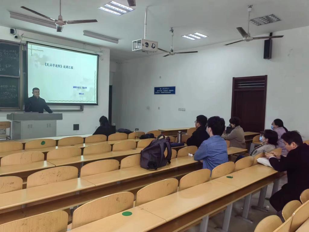 2024年4月2日下午,法学院民商经济法学教研室在博文楼427教室组织了教研室活动,教研室主任孟海鹏老师主持。此次教研室活动主要由张庆华老师对于《民法学进阶》课程进行说课展示,教研室内部进行集体学习和交流。另外,对于近期学校组织的教学材料检查工作的反馈情况,教研室内部也进行了讨论沟通,总结经验与不足,并提出相应整改方案。