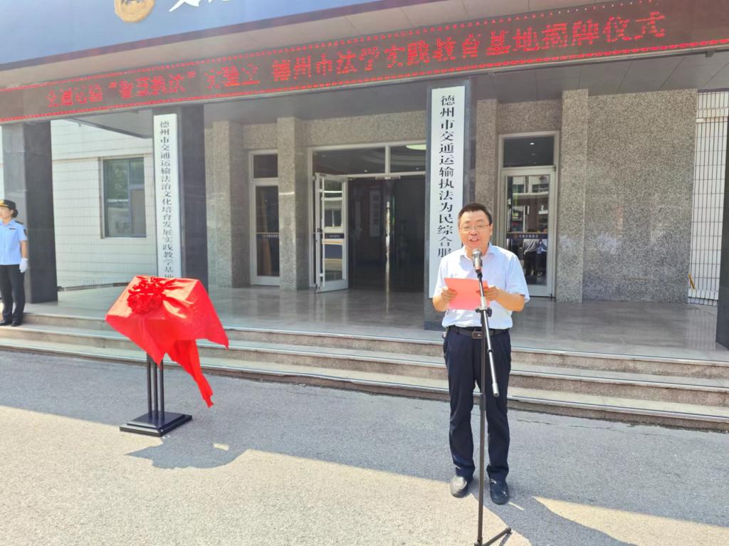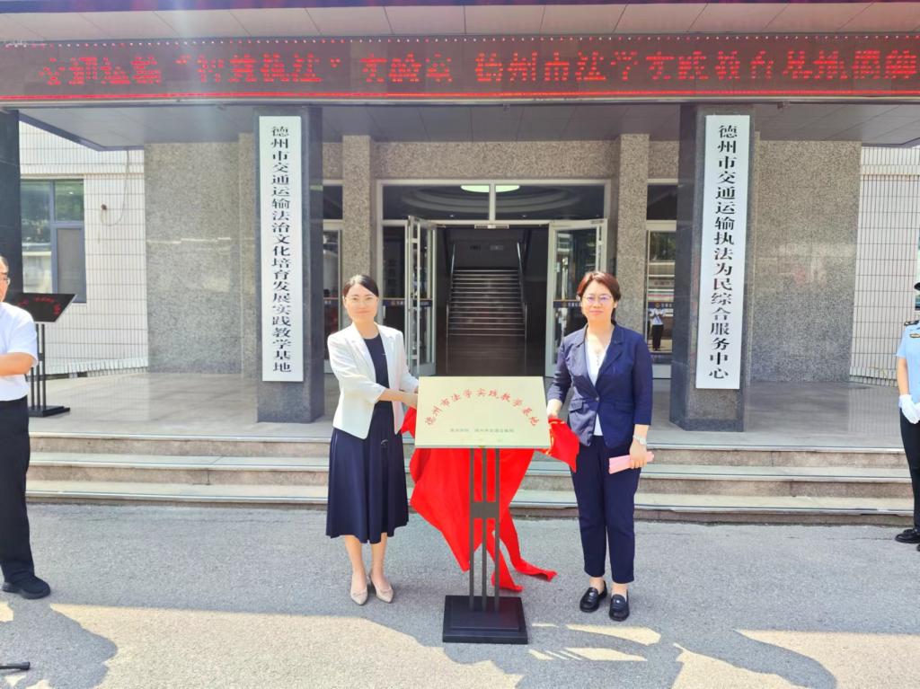 德州市交通局副局长郑亚非,党组成员、综合执法支队支队长宋玉刚及市交通局相关人员参加。郑亚非副局长和武珊珊书记为实践教学基地揭牌,杨振生院长为揭牌仪式致辞。此次活动为双方在实践教学、法治宣传和应用性研究等方面的合作奠定了基础。