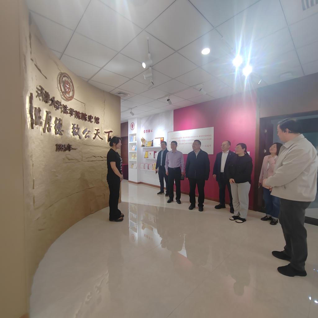 活动伊始,天津大学法学院副院长杨健带领永利一行参观了天津大学法学院院史馆,介绍了天津大学法学院的发展历程、发展理念、成就取得等。