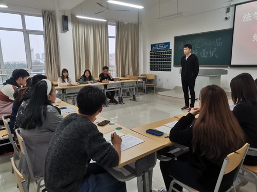 为确保学生会干部队伍吸纳优秀人才、注入新生力量,促进学院工作的良性发展,法学院于10月27日下午3:30在博文楼417、418、419、420教室进行了学生会纳新面试,法学院团总支老师与学生会学生干部对参加面试的2020级100余名新生进行面试。