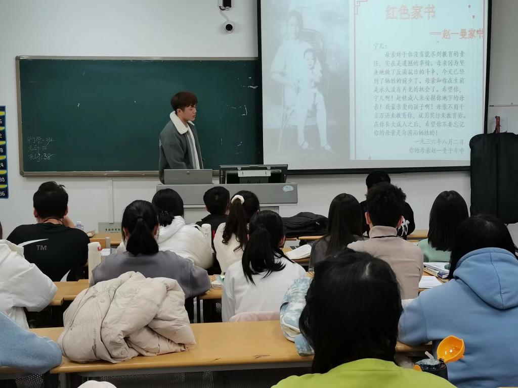 活动伊始,同学们观看红色影片,重温红色记忆。随后,组织人带领大家一起重温家书《赵一曼写给儿子的绝笔信》。通过重温红色家书,同学们体悟到了革命先烈矢志不渝的初心,体会到了革命先烈舍我其谁的责任担当。同学们纷纷发表了自己的感想,表示要从革命先辈坚定不移的理想信念、英勇斗争的豪情壮志中汲取力量,为社会主义现代化建设贡献自己的力量。最后,组织人推荐大家在寒假期间阅读《青春之歌》、《百年仁心》、《靠山》等红色书籍,并通过人民网“红色云展厅”以及学习强国APP了解革命知识,进一步追寻红色足迹。