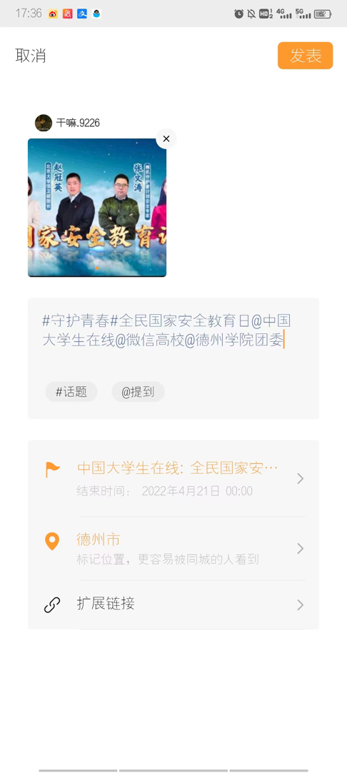 我国第七个“全民国家安全教育日”到来之际,法学院组织同学们参与“微博#国家安全日#话题”互动活动。