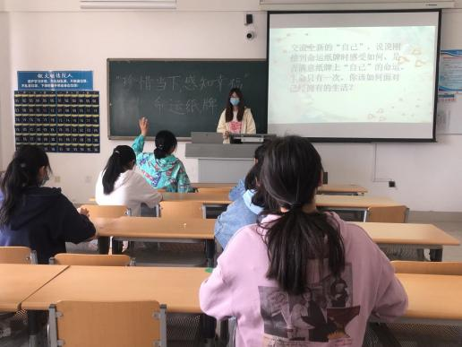 本次活动分为三个环节。首先,主持人向同学们说明了本次活动的流程、目的及背景。然后让大家思考对自身、自身的经历、自己的命运的满意度。假定每个人能够获得第二次生命,每个人的命运可以发生改变,设想处在这种情况下的生活会怎样。随后主持人让同学们随机抽取一张命运纸牌,每张纸牌就是自己命运的一种重新安排,包含新的生活经历,让同学们思考处在这种情况下的内心感受。最后同学们交流分享了全新的“自己”,说明刚抽到命运纸牌时感受如何,你是否满意纸牌上“自己”的命运,分享了自己对待生活的态度。