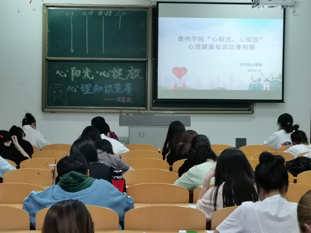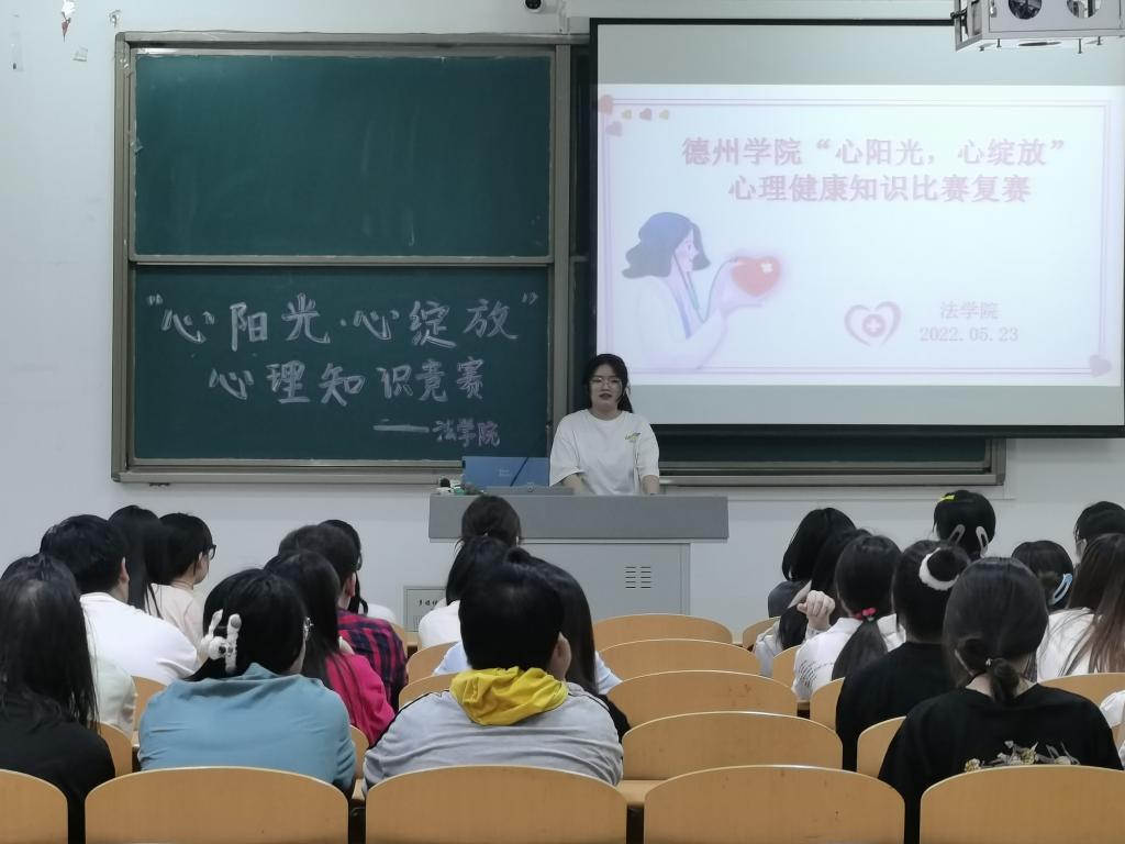 为了营造良好的心理健康教育氛围,推进学校心理健康教育工作的实施,提高大学生心理健康素质水平,丰富校园文化生活,增强大学生对心理健康的认识与重视。2022年5月19日、23日由我校心理健康教育与咨询中心主办,法学院承办的以“心阳光,心绽放”为主题的心理健康知识比赛在博文楼427教室成功举办。