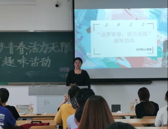 为促进同学之间的交流,增进同学之间的感情,提高同学们对趣味活动的认知和参与活动的积极性,法学院于2022年5月22号下午在博文楼417教室开展“逐梦青春,活力无限”趣味活动。