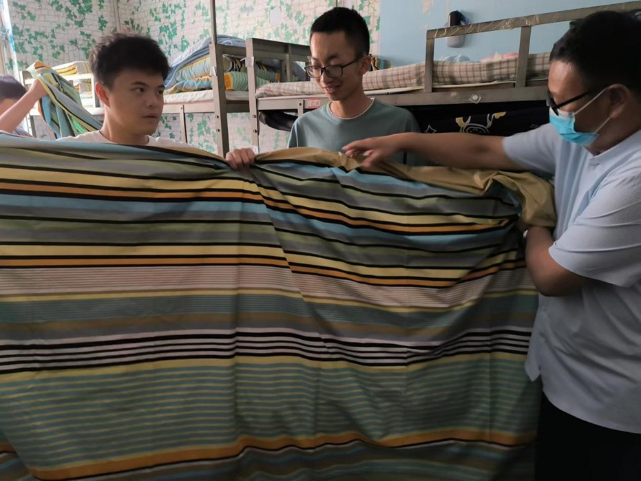 在走访过程中,领导、老师们将关怀和问候送到了每一位同学身边,亲切的叮嘱同学们要注意网络安全和自身财产安全,防止被诈骗、整理好内务、注意与同学和谐相处。同时,新生的军训生活也即将开启,对此,党委书记、院长和老师希望同学们能以饱满的热情和精神状态投入到军训生活中,同学间相互关心、相互帮助、共同成长。