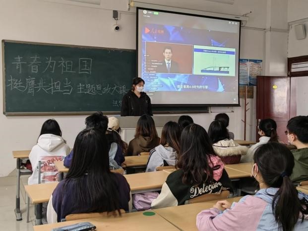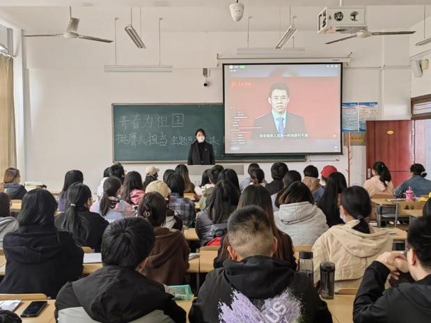 为学习宣传贯彻党的二十大精神,树立新时代青年的理想和追求,激发新青年的奋斗之心,2023年3月23日下午三点,法学院带领部分同学于博文楼418观看“青春为祖国,挺膺共担当”主题思政大课,其他同学进行线上观看。