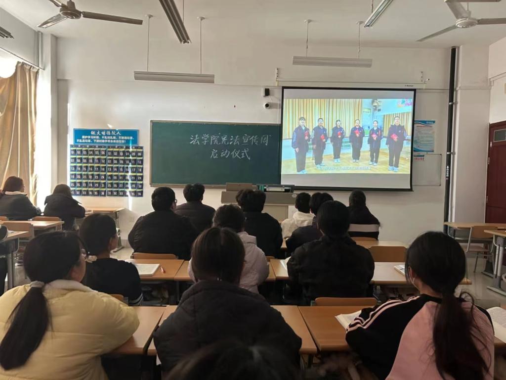 12月4日是第十个国家宪法日,为进一步大力弘扬宪法精神,建设社会主义法治文化,法学院宪法宣传周系列活动全面启动,全院50余名学生师生参加。