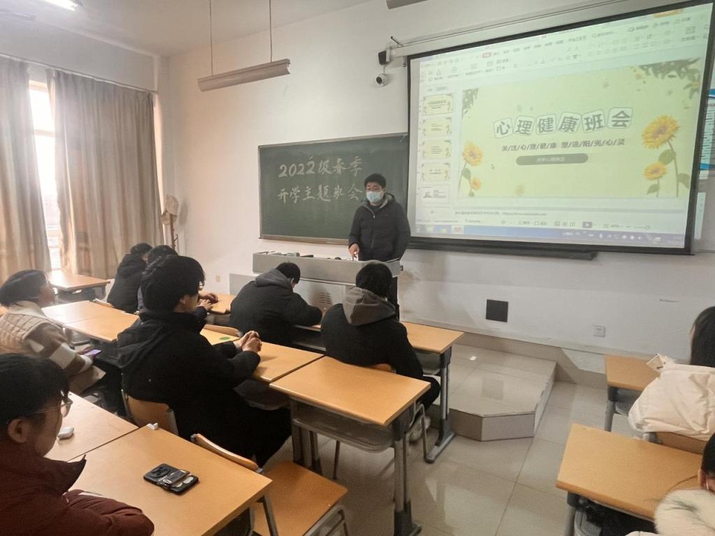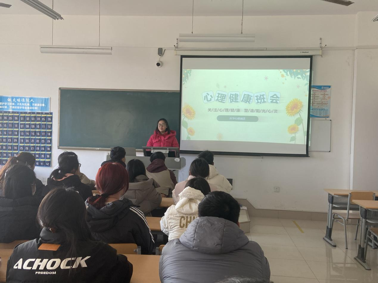 辅导员老师们从大学生常见的心理困惑及新学期心理调适等方面进行了详细的叙述。引导同学们正确面对学习、生活、交友、情感等方面的压力,并结合相关的心理学知识,向同学们传授了新学期自我心理调适方法。同时,鼓励同学们进行适当的体育锻炼,积极参加各项活动,培养人际交往能力,更好的适应校园生活。