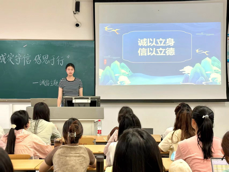 活动期间,法学院各班分别组织开展了诚信主题班会,班会内容丰富多彩,向学生们进行了征信及金融知识普及宣传和教育,将诚信教育、预防诈骗教育、远离不良贷、套路贷警示教育等融入学生日常管理,做到早防范、早教育、早发现、早处置;同时还通过诚信大讨论、观影等方式引导学生在学习生活中宣扬诚信、践行诚信,在培养诚信意识和养成诚信习惯的过程中,积极展现当代大学生良好的思想道德风貌。