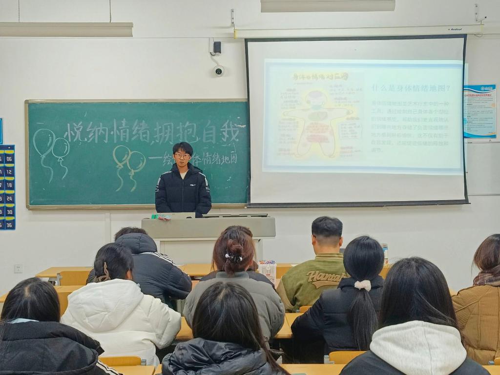 为了帮助同学们更好地探索自己的情绪世界,通过创新的方式理解和接纳情绪,进而实现心灵的自我疗愈与成长,2024年12月15日,yl88858永利官网在博文楼420教室举办了“悦纳情绪,拥抱自我”绘制身体情绪疗愈地图活动。
