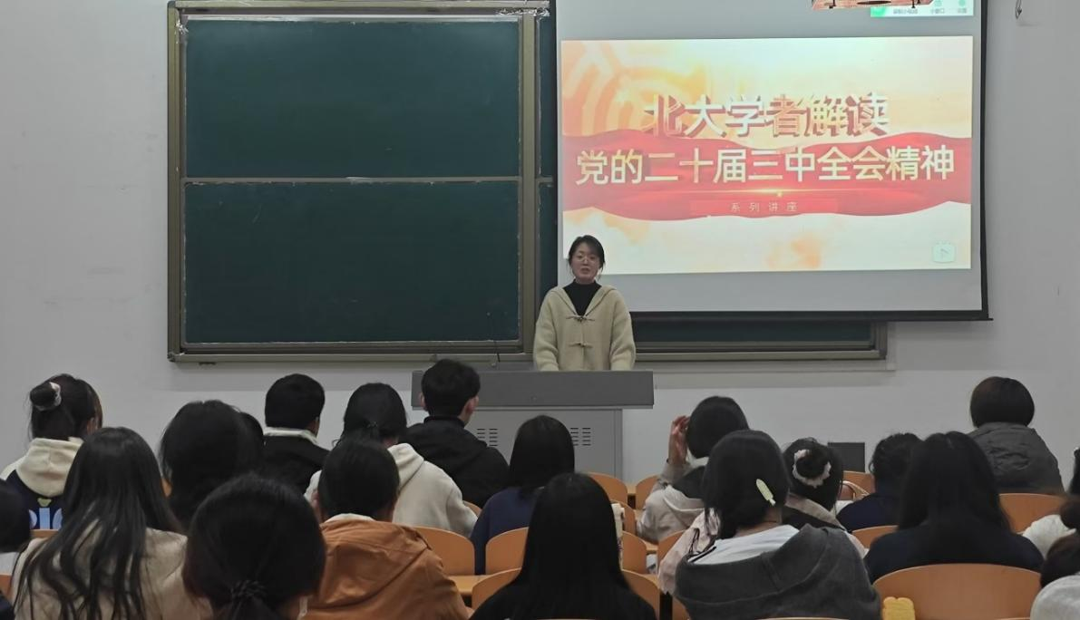 学生骨干张莹莹带领青马班学员观看视频《北大教授讲二十届三中全会精神》,并进行集体研讨,分享收获。成员们纷纷表示,本次学习使他们受益匪浅,对党的二十届三中全会精神有了进一步的理解,今后将努力在学思践悟中坚定理想信念,在砥砺前行中书写青春华章。