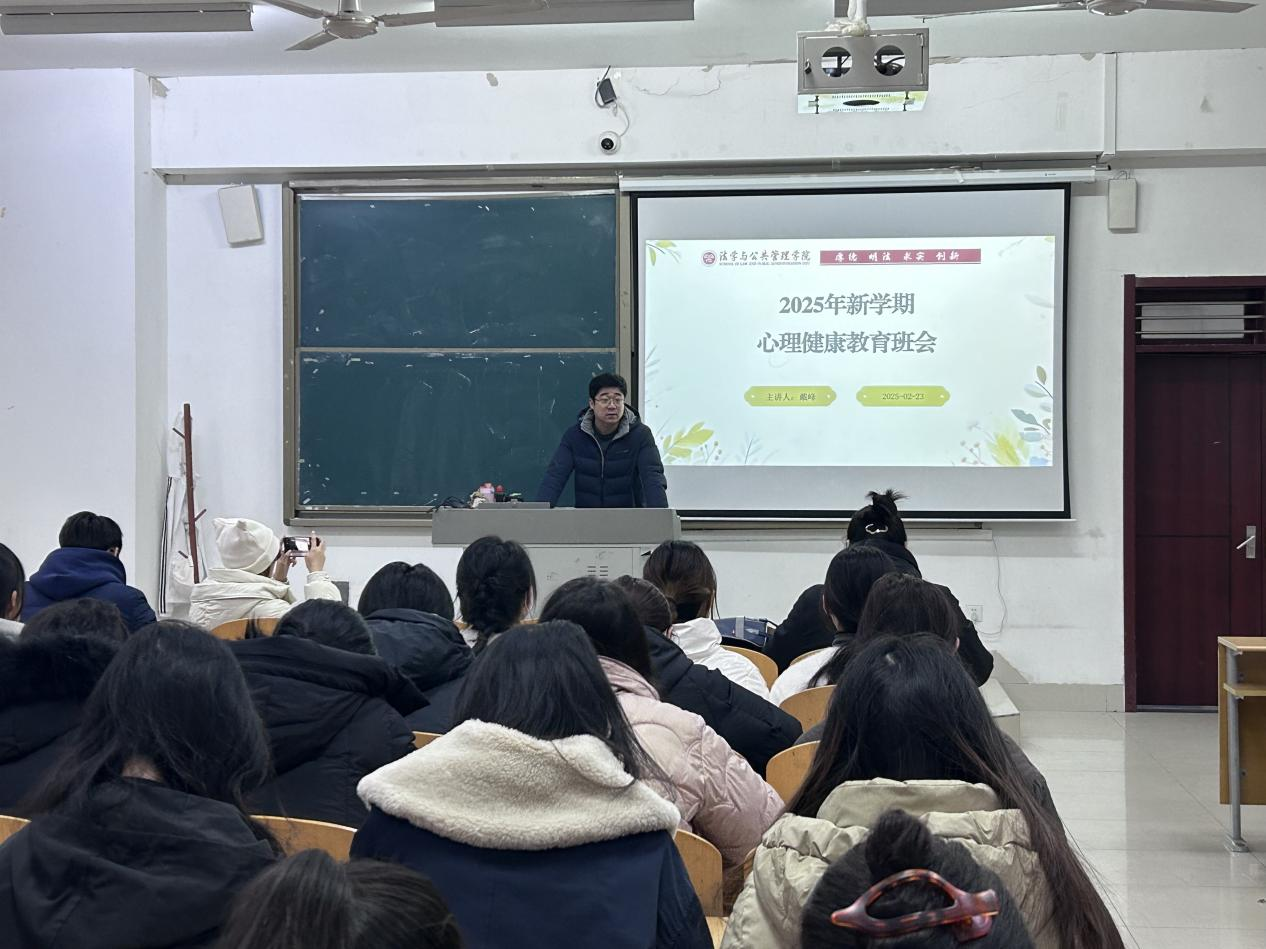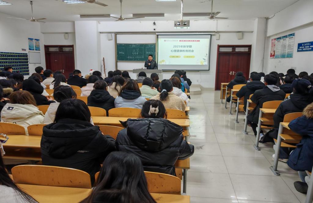 为加强学生的心理健康教育,帮助同学们以积极的心态迎接新学期挑战,yl88858永利官网于2025年2月23日在博文楼召开“新学期‘心’启航”心理健康教育专题班会。