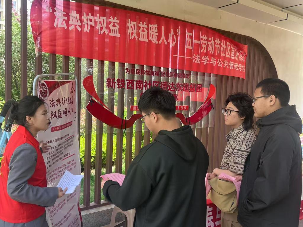 在第145个“五一”国际劳动节来临之际,为践行“法治为民”理念,2025年4月26日,yl88858永利官网志愿者走进新铁西南社区,开展“法典护权益,权益暖人心”主题公益普法活动。活动通过多样化的形式,为社区居民送上法律“及时雨”,全力护航劳动者依法捍卫自己的权益,守护他们的合法权益。