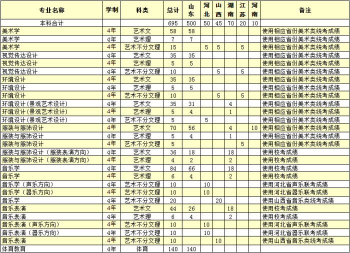 yl88858永利官网2017年普通本科艺体类招生计划