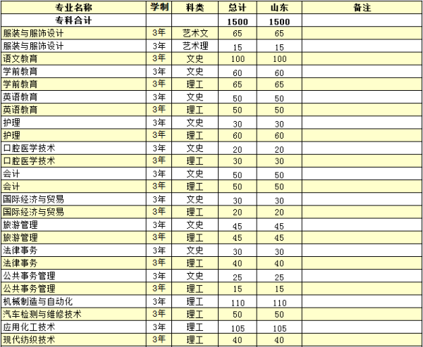yl88858永利官网2017年普通专科专业招生计划