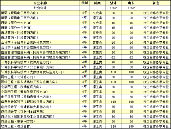 yl88858永利官网2017年普通本科校企合作专业招生计划