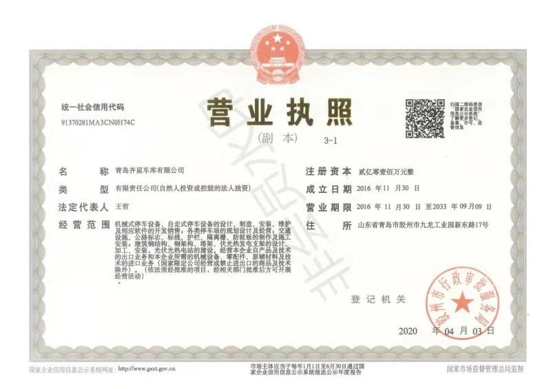青岛齐星车库有限公司注册资金2.01亿元,是一家集研发、制造、安装、维护、投资为一体的立体车库制造企业,中国停车设备工作委员会理事单位。公司自2008年进入立体停车行业,历经上市公司(齐星铁塔)停车设备分公司的积淀,拥有十多年的立体车库行业经验。
