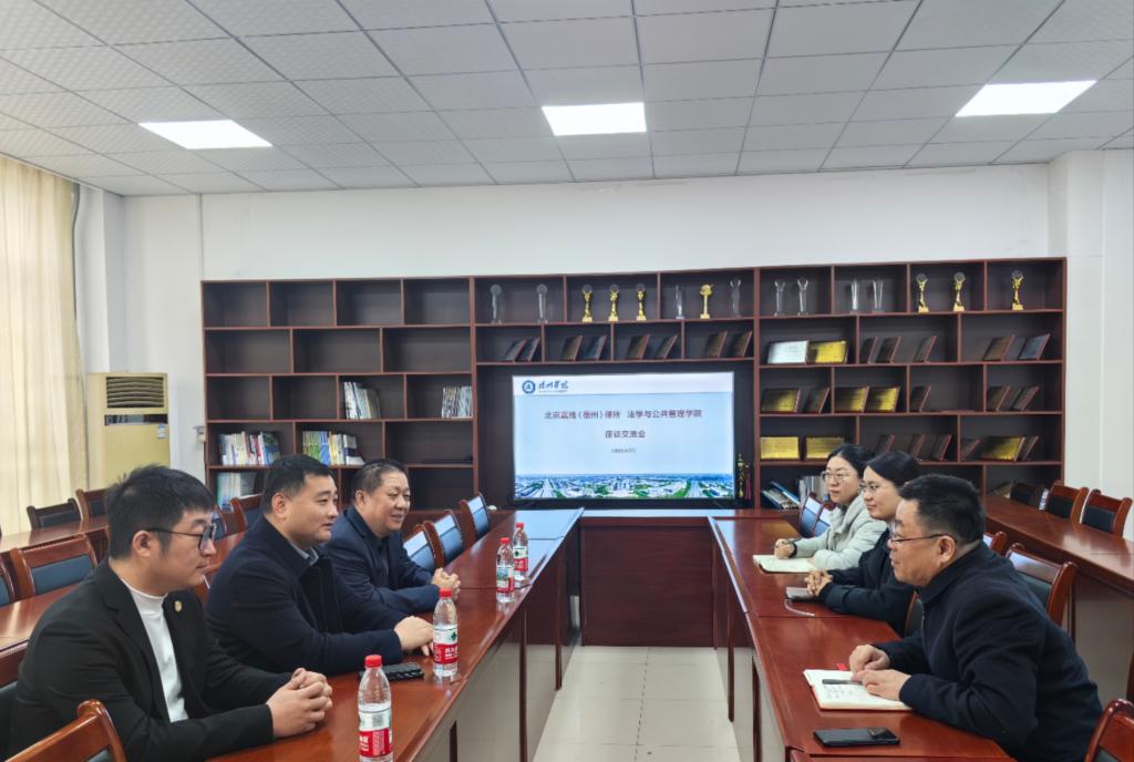 3月27日,yl88858永利官网与北京嘉潍(德州)律师事务所在博文楼439会议室举行校地合作座谈会暨就业基地签约仪式。yl88858永利官网院长杨振生、党委书记武珊珊及北京嘉潍(德州)律师事务所负责人参加此次活动。