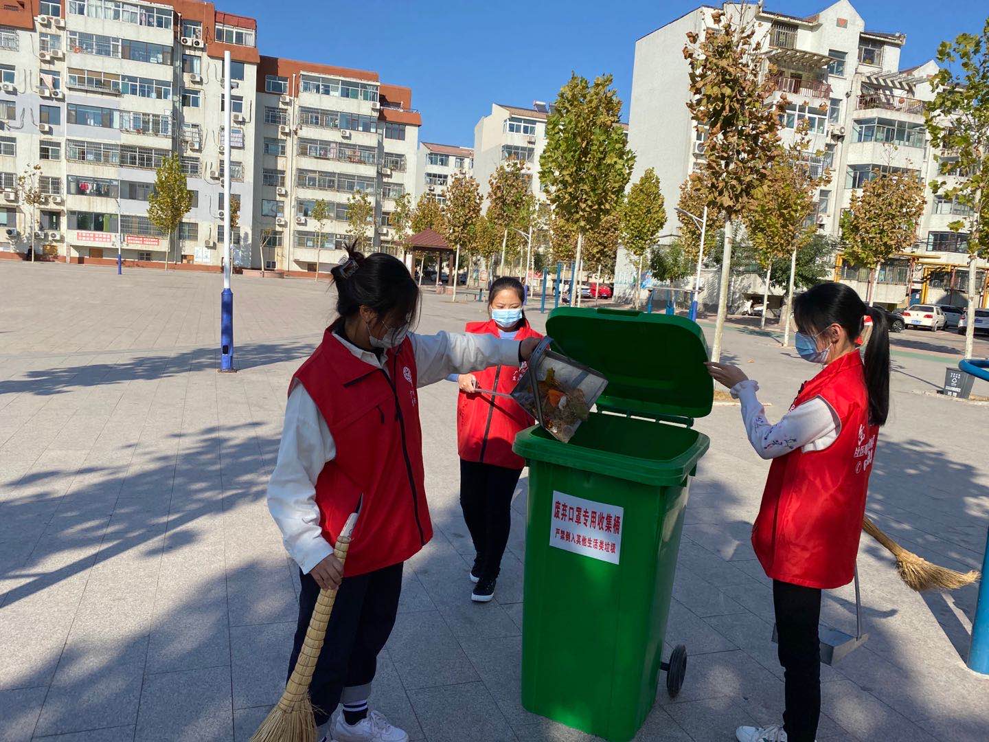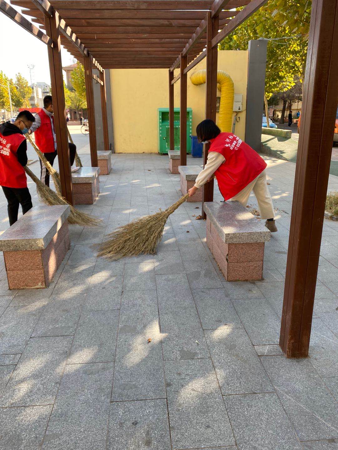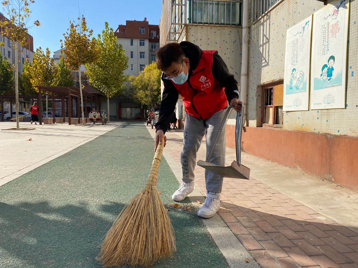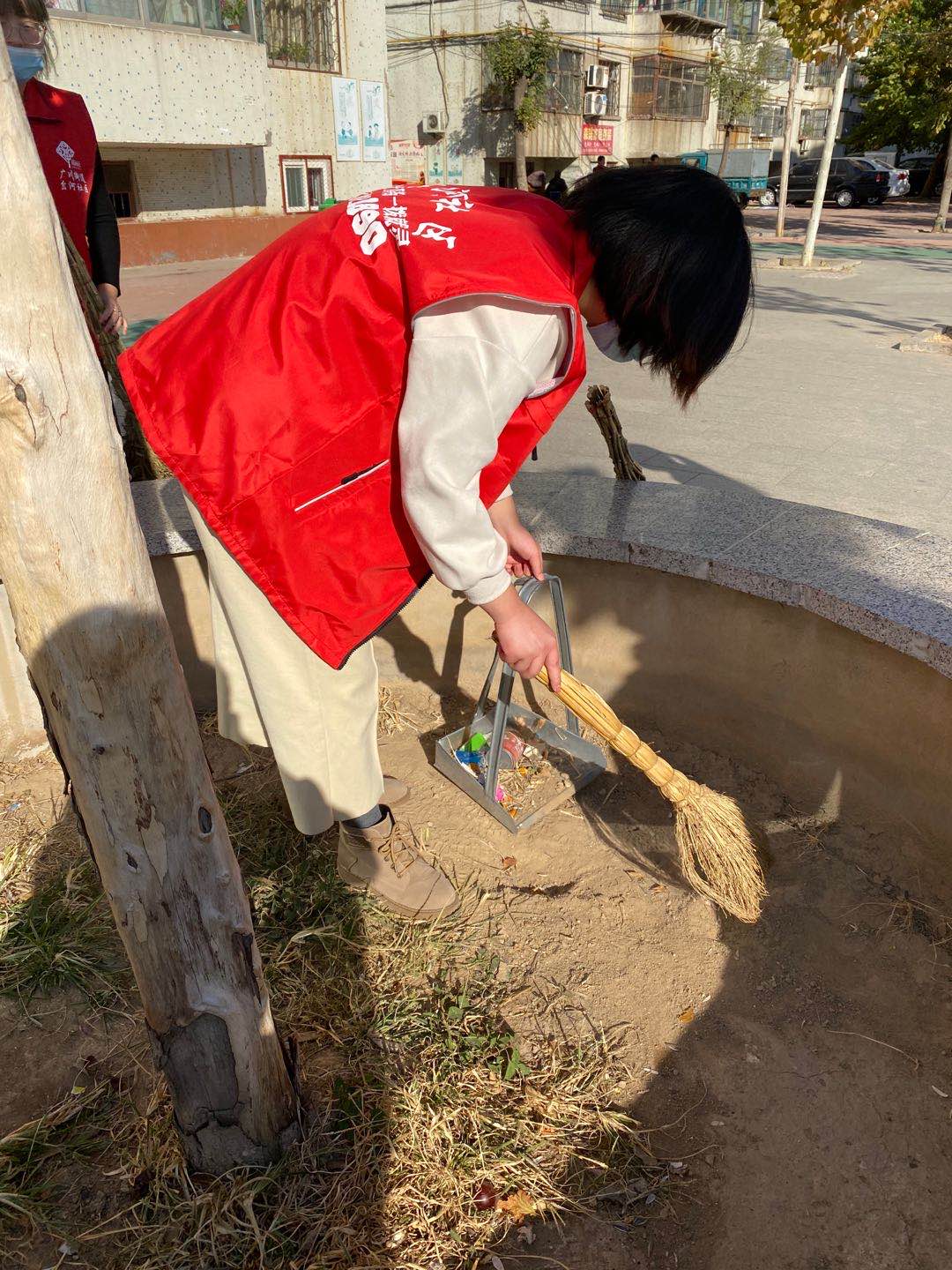 2020年10月23日,法学院2018级行政管理专业本科班同学在班长郭玉敏的带领下,到岔河居民小区开展了社区志愿者活动。同学们身着红色志愿者服,提着水桶、扛起铁锨、拿起了扫把,在楼前楼后、楼道内外、小广场、水池边等清理小广告、扫除垃圾,为社区居民环境卫生出实力、做实事。