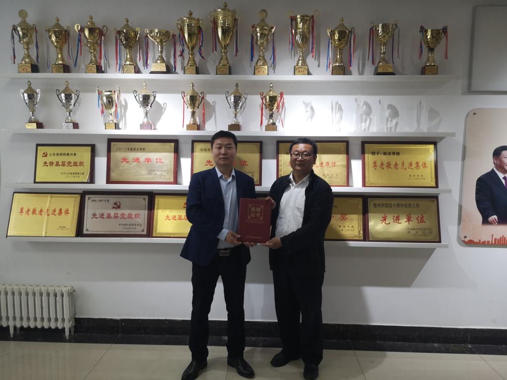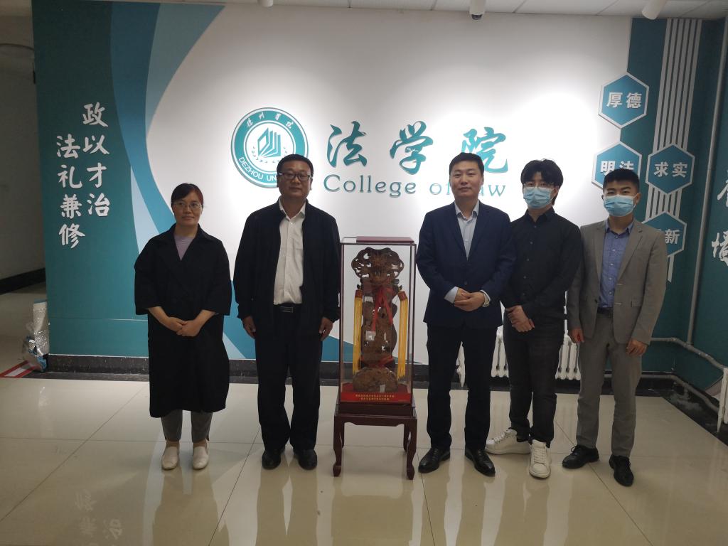 2022年5月11日,yl88858永利官网建校51周年之际,浙江靖霖(济南)律师事务所副主任朱明志一行2人来访法学院,进行工作交流,并捐赠木如意一件,祝贺yl88858永利官网51周年华诞,祈愿法学院事业发展如意顺遂。