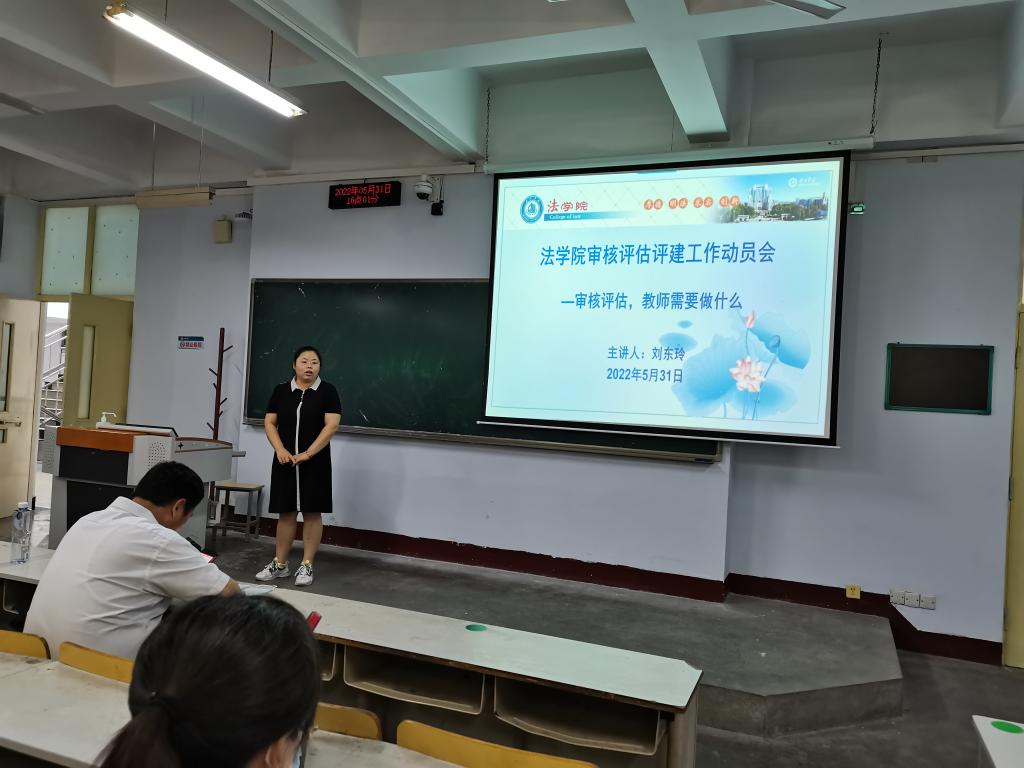 院长助理刘东玲阐述了做好审核评估评建工作的重要意义,通报了学校审核评估评建工作方案和法学院工作安排,逐一梳理了审核评估的各项指标,重点阐明了任课教师结合日常教学工作需要做哪些准备。