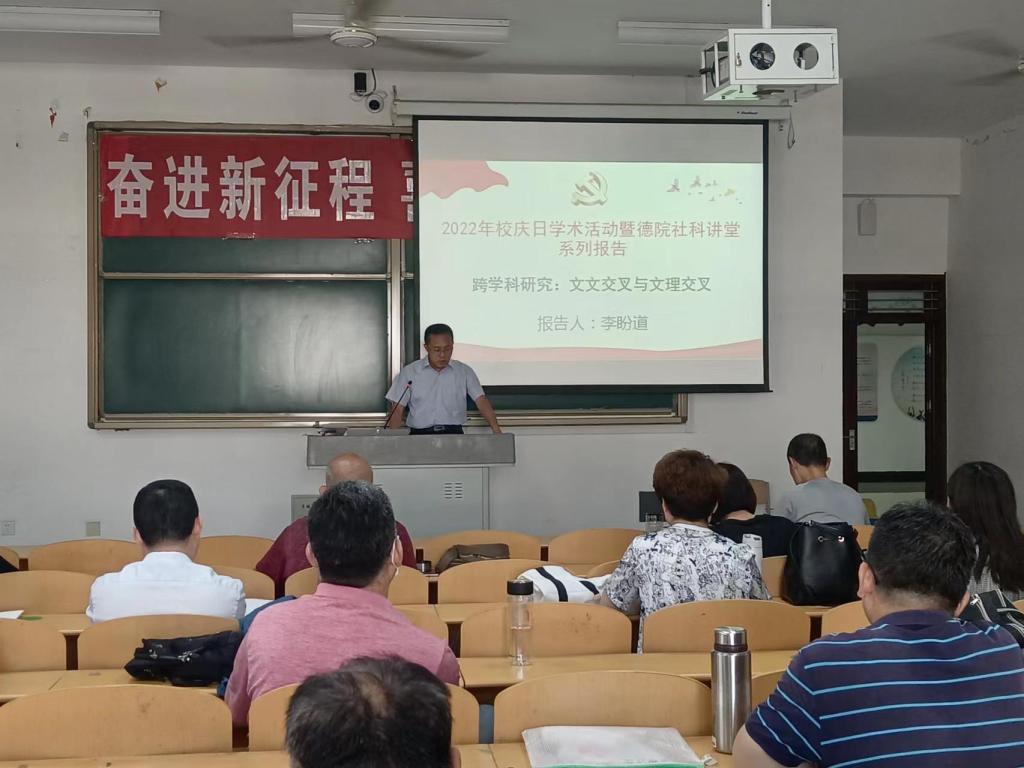 奋进新征程,喜迎二十大。6月14日下午,法学院李盼道博士在博文楼427作了题为“跨学科研究:文文交叉与文理交叉”的学术报告。