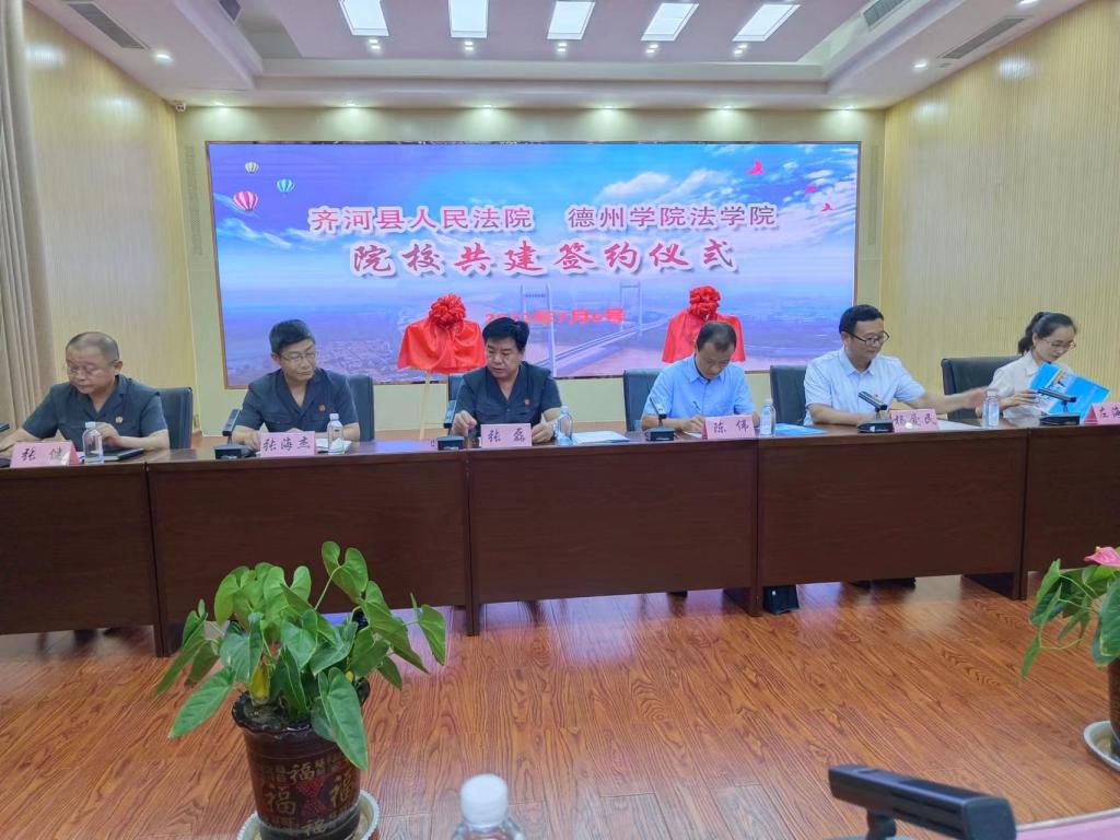 7月6日上午,法学院与齐河县人民法院举行院校共建协议签约仪式。齐河县人民法院和法学院主要负责人、师生代表、干警代表参加了活动。