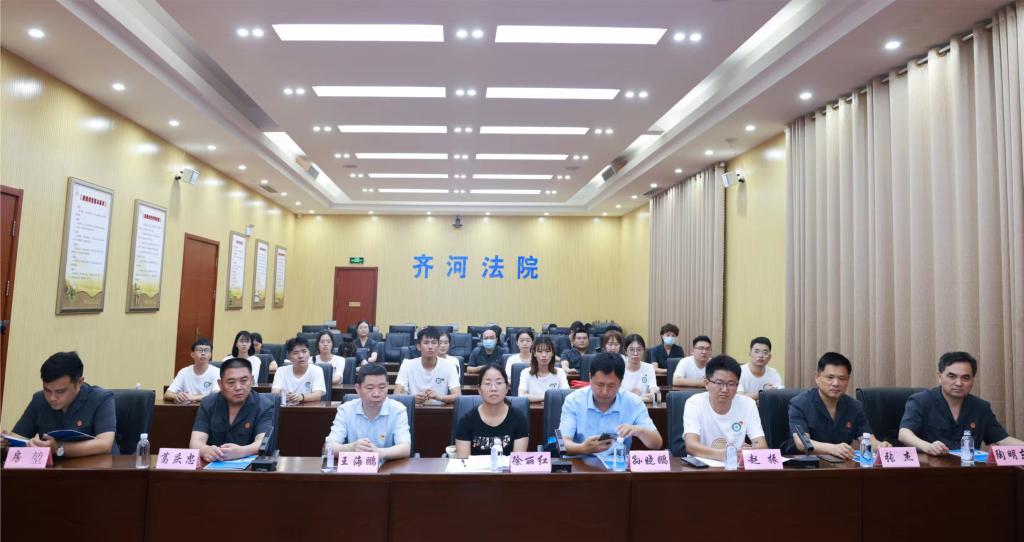 齐河县人民法院主要负责人对法学院师生的到来表示诚挚的欢迎,认为院校共建是积极推进审判实践与理论研究、人才培养与实践需求深度融合的有益探索,希望通过院校间的双向交流、理论与实践的相互碰撞,进一步推进齐河法院工作机制创新,提高理论研究和调研工作水平。