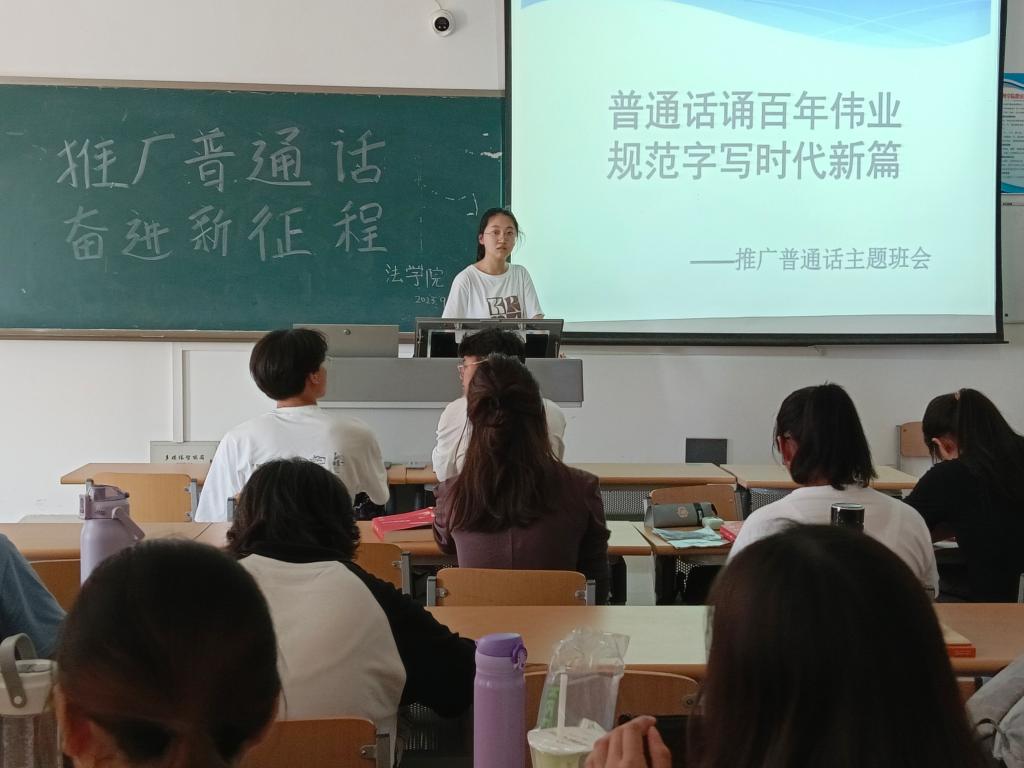 活动开始前,法学院学生积极推广并鼓励同学们讲好普通话,为开展关于推广普通话的系列活动做充分准备。活动中,同学们通过普通话比赛、演讲、主题班会等多种方式积极参与各种推广普通话的活动,不断完善自身普通话的发音标准,营造良好的学习普通话的氛围。活动后,法学院学生以实际行动讲好普通话,树立了共同学习普通话的良好学风。