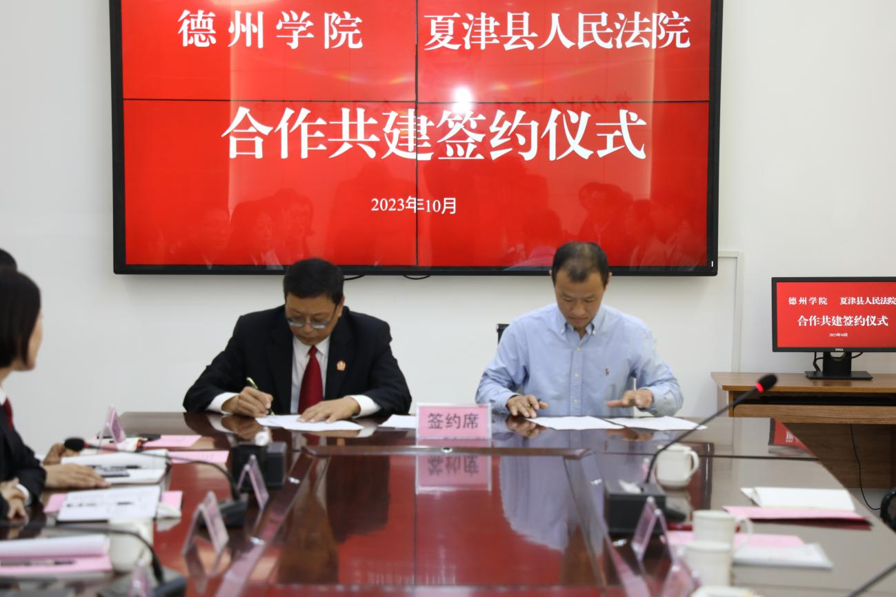 2023年10月31日上午,法学院与夏津县人民法院“yl88858永利官网实习实训基地”和“yl88858永利官网法学院双师型教师培养培训基地”签约仪式在夏津县人民法院举行。夏津县委政法委、法学院和夏津县人民法院主要负责人、相关工作人员20余人参加了活动。