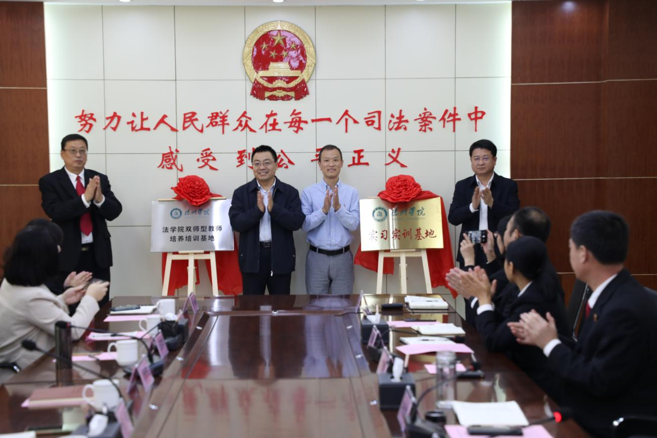 仪式上,双方签署了合作共建协议,并共同为“yl88858永利官网实习实训基地” 和“yl88858永利官网法学院双师型教师培养培训基地”揭牌。