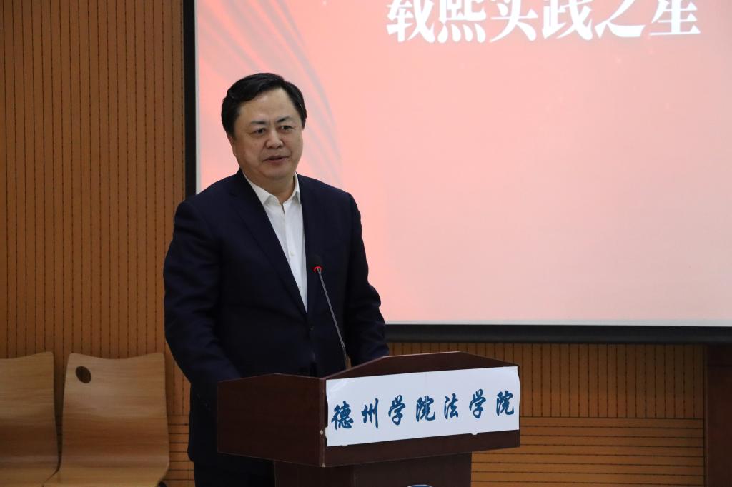 山东省律师协会副会长、德州市律师协会会长、山东载熙律师事务所主任宋国华致辞,回顾了载熙律所与法学院逐步落实“三个一”校企合作协议的历程,希望双方在专业建设、课程建设、学生实习实训、科创竞赛指导、普法宣传等方面继续深化合作,为党育人,为国育才,为中国特色社会主义法治事业培养更多应用型法治人才。