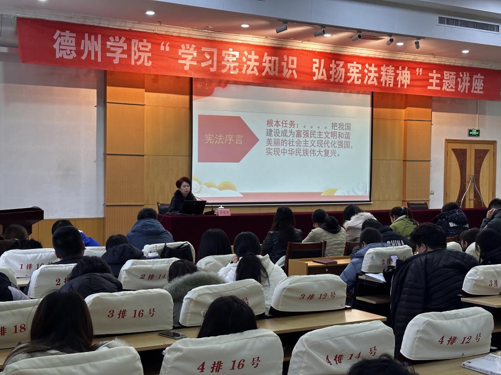 12月4日是我国的第十个国家宪法日,为在全校范围内普及宪法知识,提高师生们的宪法意识。12月13日,由学生处主办,法学院承办的“学习宪法知识 弘扬宪法精神”主题宣讲活动于厚德楼四楼报告厅进行,法学院副教授孙桂燕老师主讲,全体辅导员、学生代表及学生处相关人员参加了本次活动。