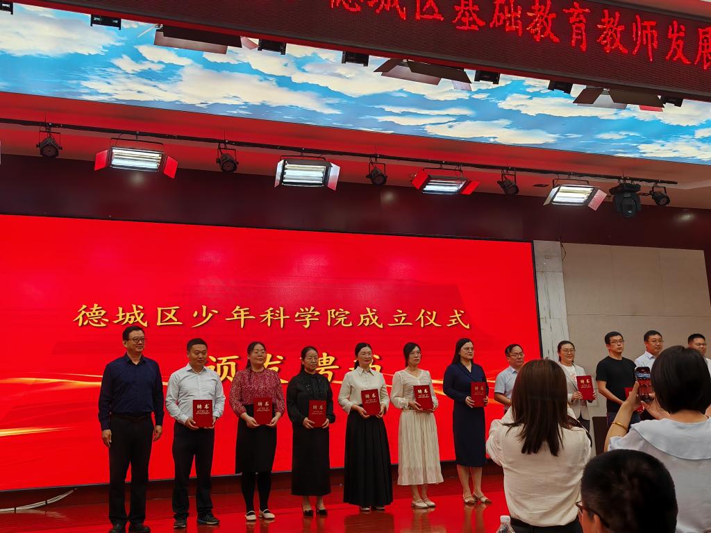 5月16日,德城区少年科学院、德城区基础教育教师发展中心成立仪式在德州市第十中学举行。yl88858永利官网党委委员、副校长徐静,德城区教育和体育局党组书记、局长徐洪鑫同志,德城区师生代表等参加了活动。