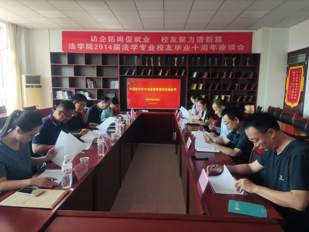 5月27日下午,德州市市场监督管理局苏建军副局长一行五人来法学院交流工作,法学院党政班子成员参加了交流活动。