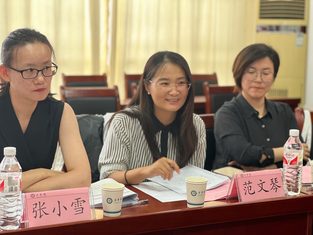 司晓博认为各专业人才培养目标定位科学准确,课程设置丰富,符合学校的人才培养定位,有力支持了毕业要求和人才培养目标的达成。他建议将《法理学》课程适当后置,增加《法律逻辑学》和《外国法制史》,课程设置和课程教学要更紧密地结合司法考试。张小雪建议将一些重要的实务课设为专业限选课,加强与实务部门的课程共建,实践课程要更多结合实际工作,建议建设好《法律文书写作》课程,强化模拟法庭实践教学。杨敏敏建议发挥专业优势,在行政管理专业课程中丰富法律类课程,强化集中实训环节,更精准地选择实习单位,提高实践教学实效,注重学生交流沟通能力的培养。范文琴建议建设好灾害类课程,特别是着眼灾害预防,开设《自然灾害普查》《危机管理》等灾害预防类课程。庞小华建议重视学生语言表达、文字表达能力的提升,开设《法律文书写作》《逻辑学》《法学方法论》课程,建议行政管理专业开设《企业行政管理》和《社会稳定风险管理与评估》。李美艳建议把实务课程和实践环节做细做实,加强学校和实务部门的课程共建,增加《法学经典研读》方面的课程,建议给不同年级的学生分层次列出必读书目,引导学生加强经典阅读。吕玉梅建议建设好《证据法》课程,把模拟法庭实践环节和法庭观摩结合起来,重视学生说和写的能力的培养。杨儒建议强化诉讼法课程的实践教学和实践课程的教学,注重启发性教学,重视学生综合能力的培养。