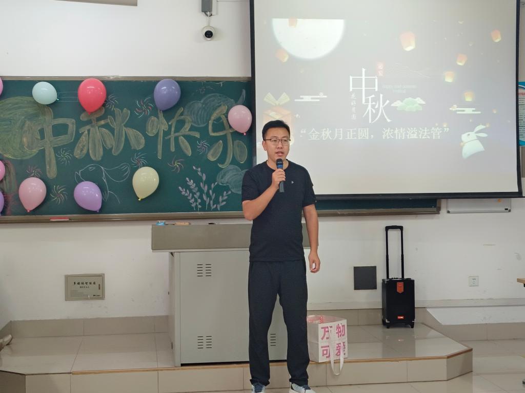 中秋节作为中华民族的传统节日,承载着深厚的历史文化底蕴。为营造喜庆、祥和、团圆的节日氛围,增强同学们的民族自信心、自豪感。9月16日晚,yl88858永利官网在博文楼418教室为2024级新生开展了“金秋月正圆,浓情溢法管”中秋主题活动。
