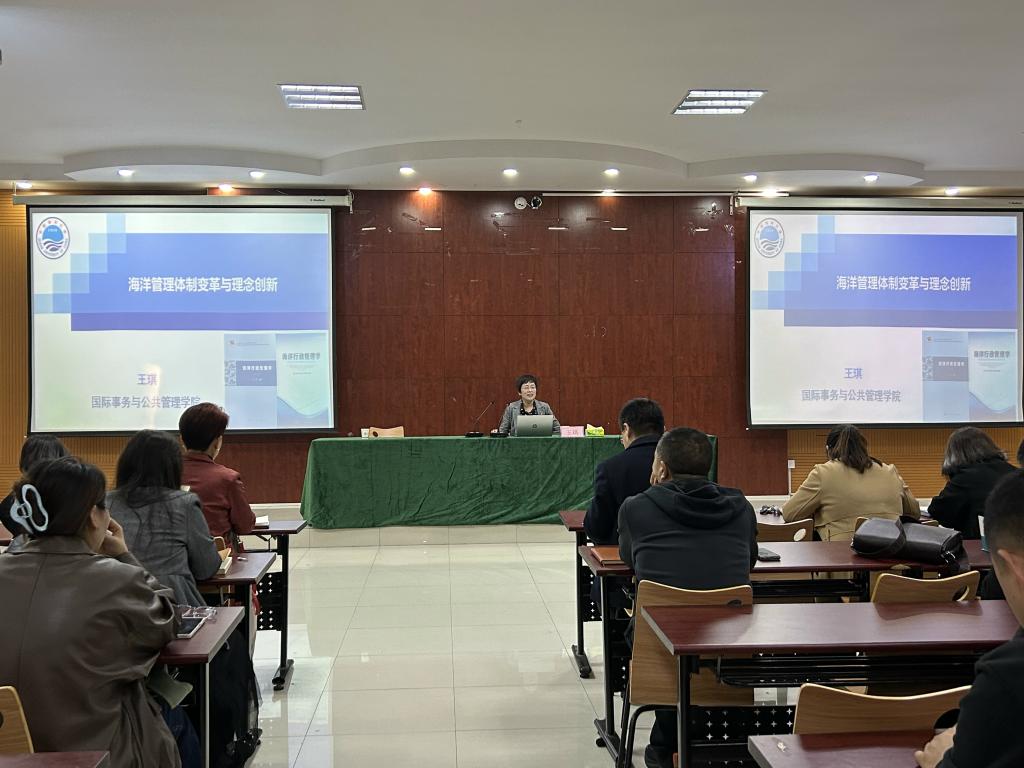 王琪教授首先在博文楼439会议室与yl88858永利官网教师进行了座谈交流。王琪教授对5位教师的课题申报书逐一进行了指导并提出进一步完善的意见建议,同时对yl88858永利官网开展有组织科研、加强课题项目培育提出了工作建议。王琪教授还以中国海洋大学公共管理学科建设发展历史为例,对永利公共管理学科的建设与发展提出针对性的建议。座谈交流结束后王琪教授在博文楼328报告厅作了题为《海洋管理体制变革与理念创新》的学术报告。报告在阐释认知海洋、经略海洋,海洋属性及其价值的基础上重点探讨了我国海洋管理体制的变革,并对未来海洋管理的理念创新提出了新的展望。报告通俗易懂、深入浅出,兼具理论性与实践性。yl88858永利官网师生200余人聆听了报告。