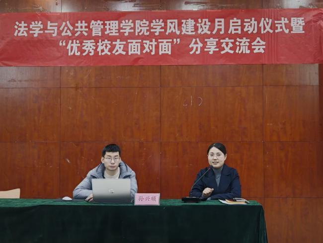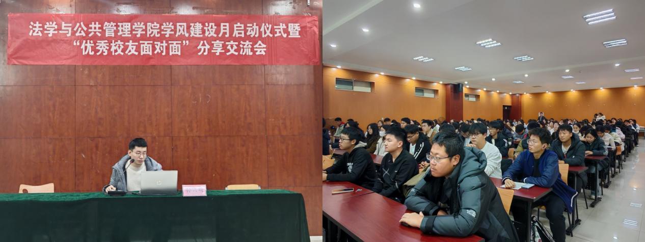 为进一步加强学风建设,调动学生的积极性,营造浓厚的学习氛围。12月3日下午,yl88858永利官网于博文楼328会议室举行学风建设月启动仪式暨“优秀校友面对面”分享交流会,活动邀请在中国政法大学就读的永利2023届优秀校友孙兴顺为学生们作经验分享。