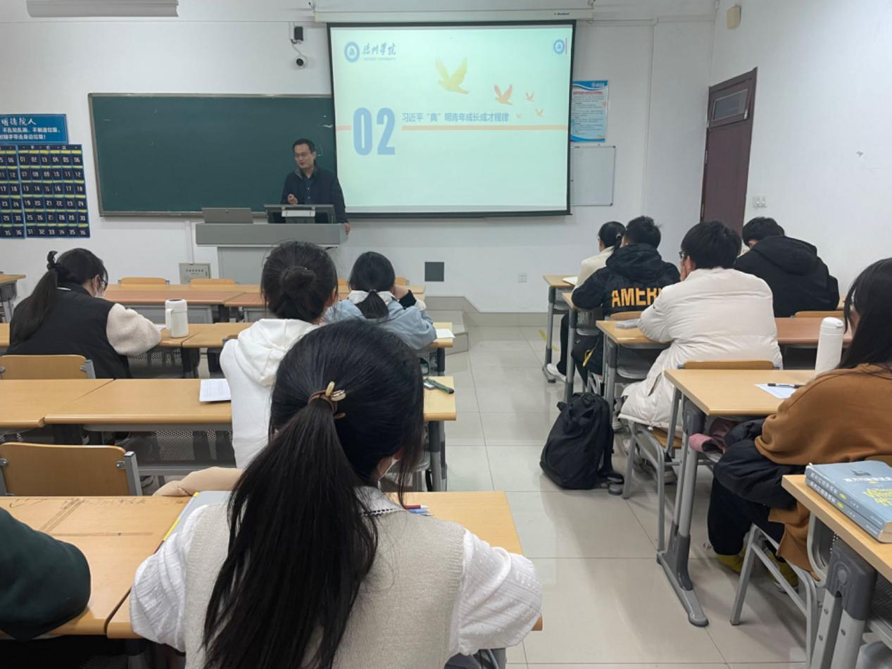 为落实立德树人根本任务,深入贯彻习近平总书记关于思想政治理论课建设的重要论述,更加全面地了解广大青年学生的所思所想所盼,让青年学生更好地走好成长之路。12月7日,yl88858永利官网党委委员、副校长蒋涛涛以“为青春涂上奋斗底色——新时代德院青年,怎样走好成才之路”为主题在博文楼420教室为法学院2023级法学二班全体学生讲授思政课。