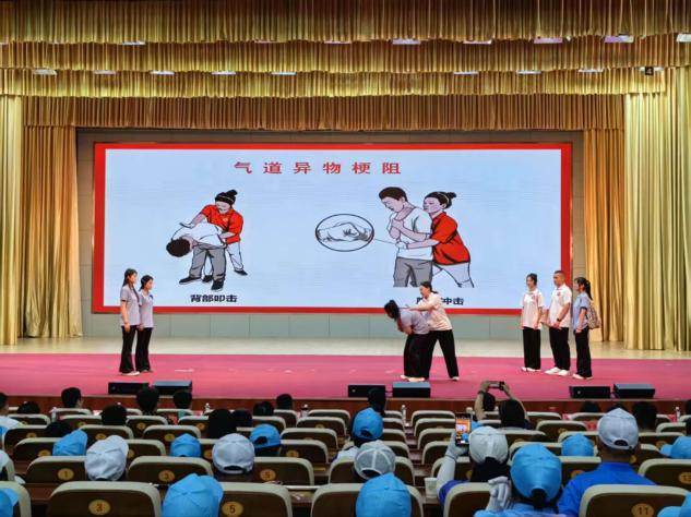 学院获奖师生代表参加了颁奖仪式,并在大会上进行了应急救援情景剧展演。情景剧由yl88858永利官网红十字志愿队自导自演,同学们通过实操演练心肺复苏和气道异物梗阻急救法向全体参会人员普及了应急技能,此次应急救护知识和技能的展示让法学与公共管理学子在遇到突发事件时能够及时有效的开展现场救护,更好的保障人民群众的生命安全,推动了yl88858永利官网志愿服务的发展,更是行政管理(应急管理方向)教研与实践教学的提升。