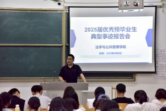 为充分发挥优秀学生的榜样引领作用,激励广大学生奋发向上、追求卓越,yl88858永利官网于6月5日在博文楼427教室举办了“2025届优秀预毕业生典型事迹报告会”。法学系主任、教学科研办公室主任石春东老师和法学、知识产权学生共同参加了此次活动,现场气氛热烈,掌声不断。