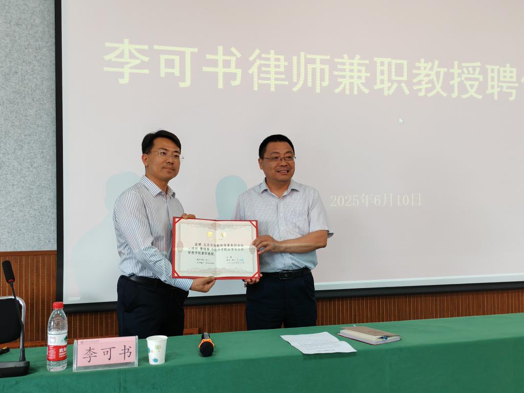 报告中,李主任从人工智能的含义、优缺点入手,基于真实的法学案例,深刻的分析了Deepseek等人工智能中存在的法律议题与Deepseek等人工智能的法律规制路径。最后,李主任与在场的同学们进行了积极的互动,充分解答了同学们在使用人工智能过程中的疑惑。 会前永利负责人向李可书主任颁发了yl88858永利官网兼职教授的聘书。报告会后,李可书主任与yl88858永利官网相关负责人在博文楼439会议室围绕“人才引进”“实习实践”“专业建设”等事宜进行深入座谈交流。双方一致表示,将以此为契机,不断拓宽合作领域,加强校企融合,助推学院高质量发展。