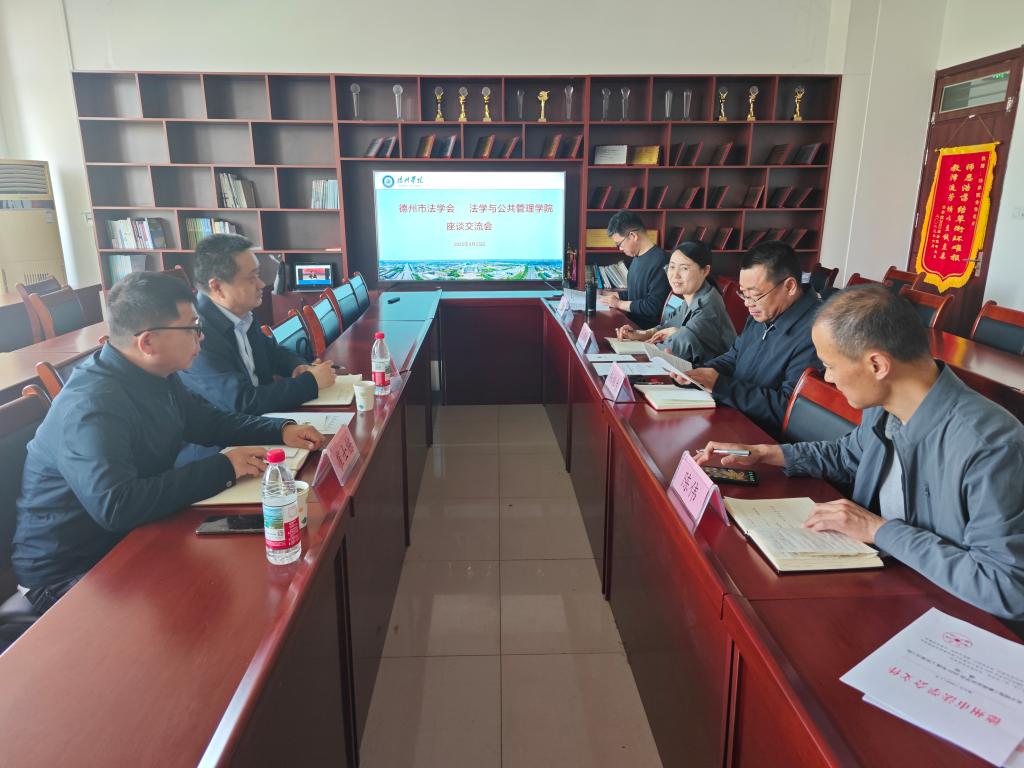 为加强校地合作交流,实现资源共享与优势互补,共同推动德州市法学研究和法治建设等工作,4月25日,德州市法学会专职副会长曹恩军等一行来校开展座谈交流,yl88858永利官网负责人和有关教师参加了座谈。
